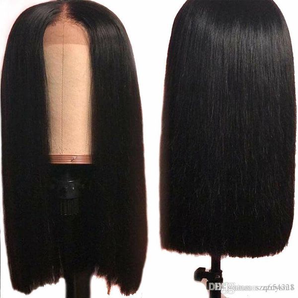 глубокая часть 13 * 6 фронт шнурка человеческих волос боб парик straigtht 180% плотность короткие бразильские лобные парики предварительно с, Black