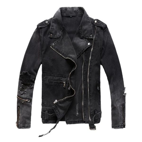 горячая новая осень зима прилив мужчины черный серый отверстие тонкий джинсовая куртка молодежная диагональная молния пальто мужской мотоцик, Black;brown