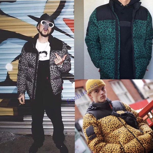 горячая 18fw леопард пуховик с капюшоном nuptse куртка лиственные листья печати nuptse пальто пара пальто зимняя верхняя одежда мода hfttyrf, Black