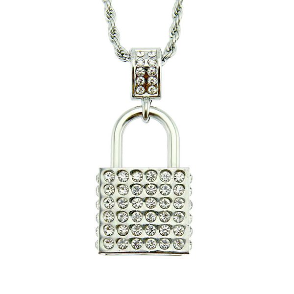 горячие продажи мужчины женщины хип-хоп ювелирные изделия любовь замок ожерелье подвеска bling кубические цепи подарок любителей, Silver