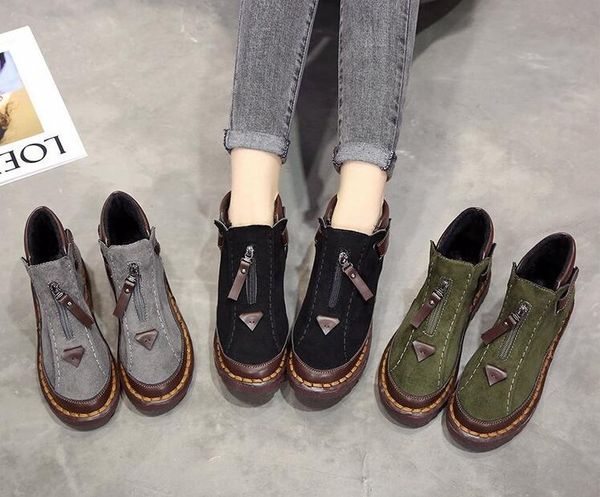 hot sale autumn women ankle boots slip on platform hook & loop zipper sewing female shoes fashion flats non-slip casual footwear