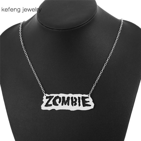 готическое имя ожерелье мода винтаж серебряный цвет нержавеющая сталь зомби ожерелье слова письмо колье женщины мужчины ювелирные изделия, Golden;silver