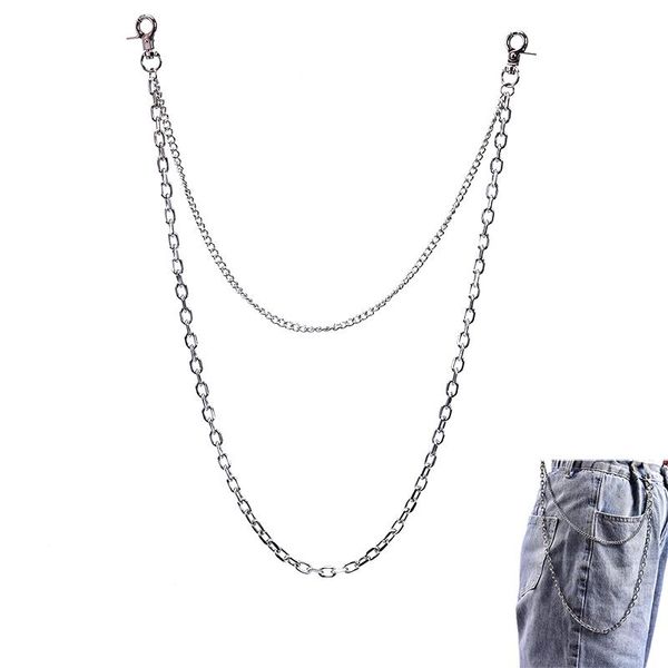 двойной слой рок панк-крюк брюки брюки талии ссылка ремень металлическая цепь хип-хоп ремни для женщин мужская одежда аксессуары для одежды, Silver
