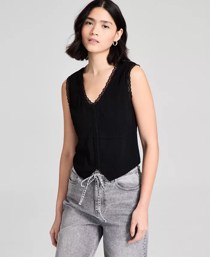 Женский вязаный жилет с V-образным вырезом и кружевной отделкой And Now This, черный