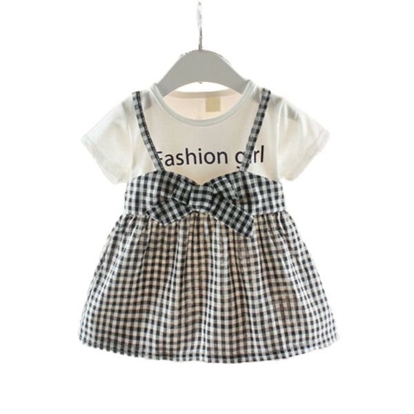 дети девочки малыш девочки одежда вокруг шеи с коротким рукавом лук плед письмо печати хлопок прекрасный новорожденных платья одна шт, Red;yellow