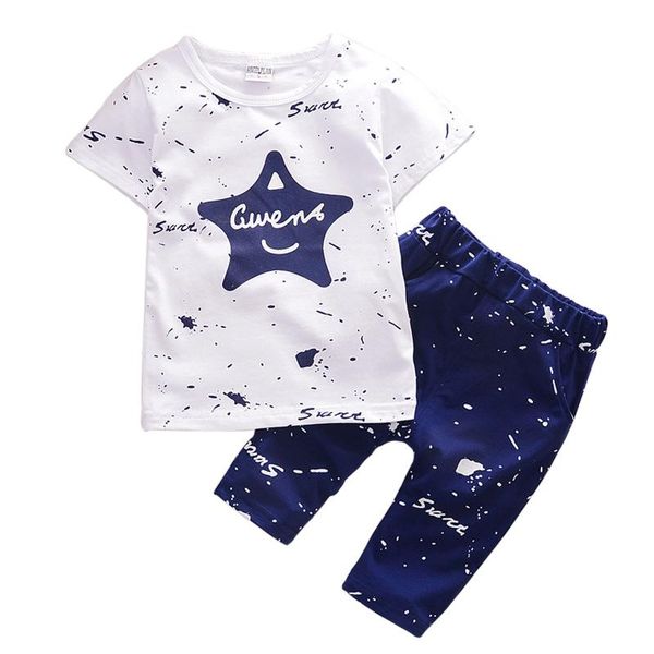 детская одежда наборы 2019 новая летняя звезда печатные мальчики t шир шорты костюм повседневная ребенок младенческие дети стильная одежда 1, White