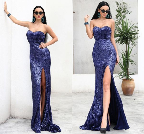 длина sparkly sequined темно-синий вечерние платья со стороны высокого разделить пола платье выпускного вечера формальные партии платья деше, Black;red