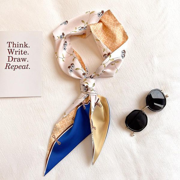 длинные тощие шелковые шеи шарф женские волосы кольца цветочные печать ручка сумка галстук шелкового прохождения follary женские ленты шарфы, Blue;gray