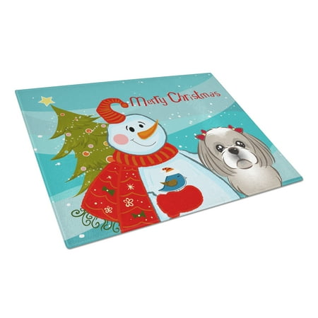 Carolines Treasures BB1870LCB Snowman with Gray Silver Shih Tzu Glass Cutting Board Large 12H x 16W multicolor