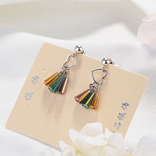женская личность корейская любовь серьги простой моды темперамент красочные стеклянные серьги сердца шпильки кристалл, Golden;silver