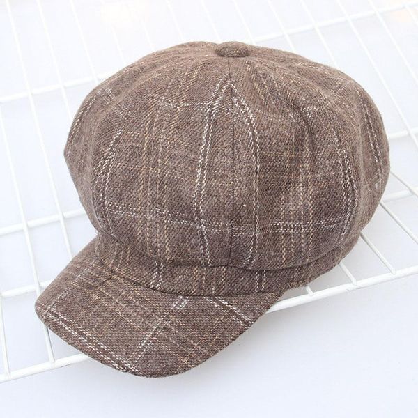 женская повседневная осень теплая литературные исполнитель ретро войлок плед печати берет hat cap, Blue;gray