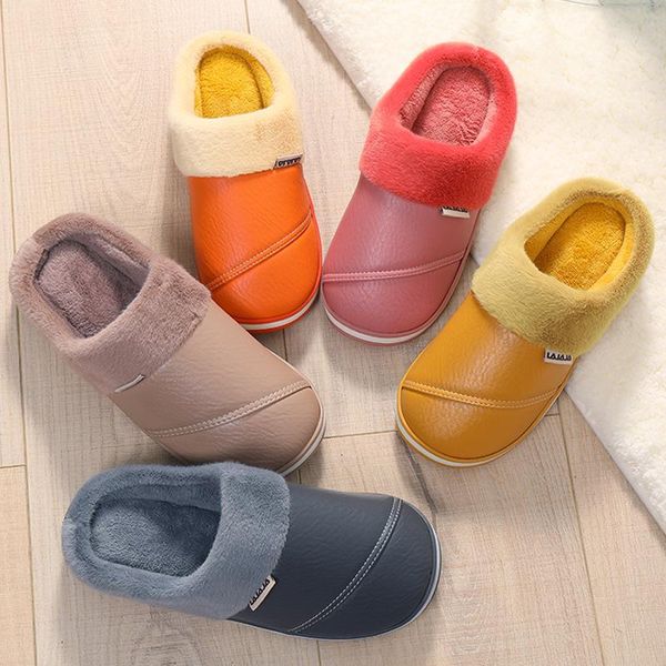 женские тапочки нечеткие главная зимние крытый теплые ботинки толстым дном плюшевые водонепроницаемый кожа домашние тапочки человек хлопок о, Black