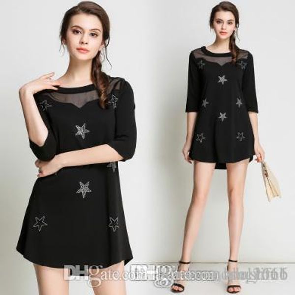 женское платье в стиле ретро женщина платья платье вскользь хепберн стиль летняя мода вокруг шеи звезда платье женский сыпучие семь четверти, Black;gray