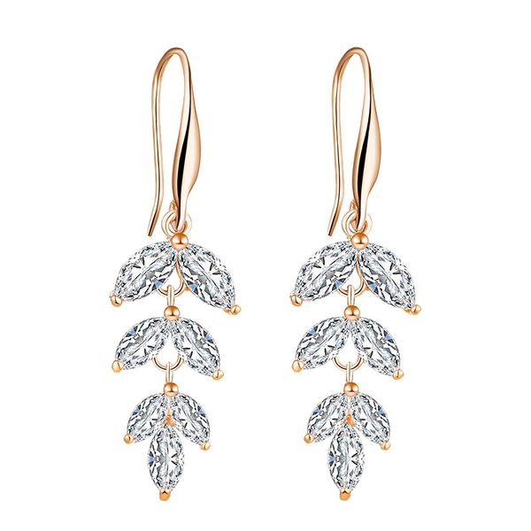 женщины дизайнерские серьги роскошные модные ювелирные изделия, сделанные медь цирконы материал рыболовный крючок листья стиль для подарка j, Silver