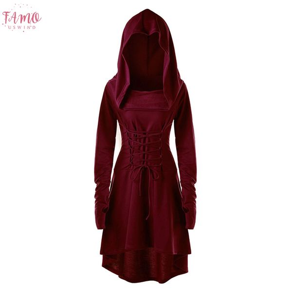 женщины старинные женские пуловеры высокая империя низкая повязка длинное платье костюмы зашнуровать платье с капюшоном плащ повседневная од, Black;gray