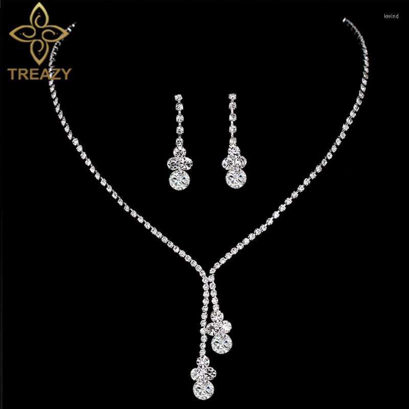 Necklace Earrings Set TREAZY Charming Zircon Crystal Bridal Floral Drop For Women Engagement Wedding, Picture shown