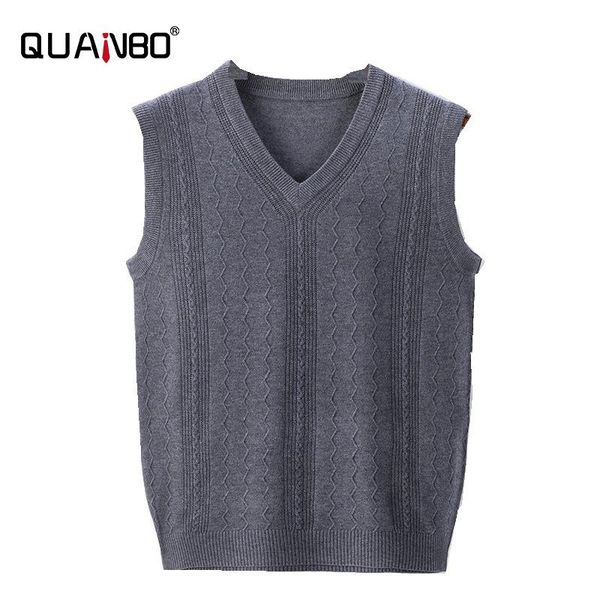 men's vests quanbo v neck sweater vest cable knitted pullover sweaters fashion jacquard sleeveless brand clothing, Black;white