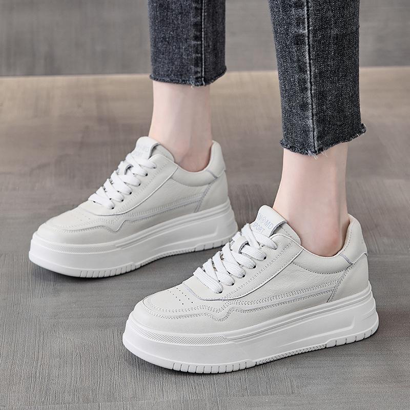 кожаные туфли на толстой подошве, маленькие белые туфли, женские летние новые туфли на платформе, женские туфли из первого слоя коровьей кожи, универсальные кеды, женские спортивные 40 бежевый