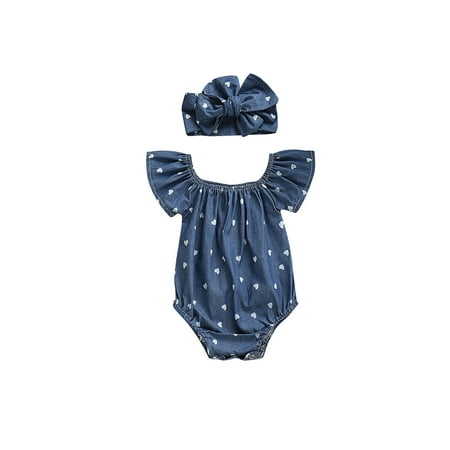 Newborn Kids Baby Girls Clothes Floral Jumpsuit Romper Playsuit + Headband Outfits