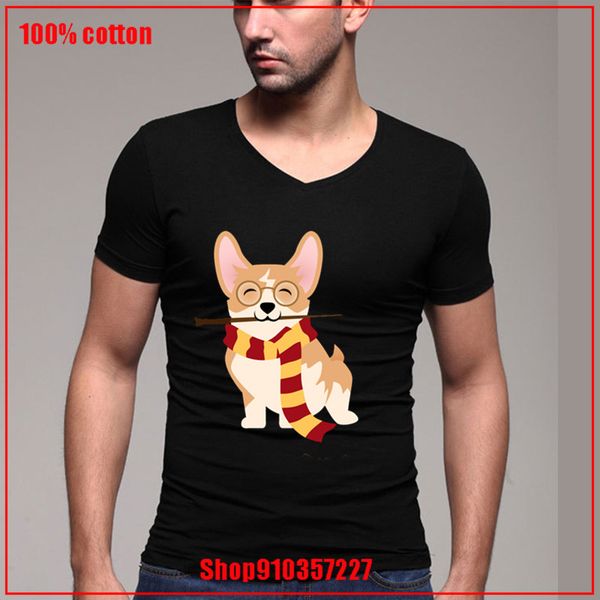 корги cosplayed как гарри поттер unique любовь v-образным вырезом футболки письмо печати подарок пьющий майка мужчина хлопка топы смешная фу