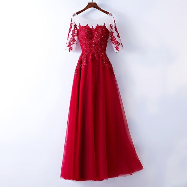 короткие рукава тюль линия вечерние платья с кружевными аппликациями новая длина пола пром платье зашнуровать назад, Black;red