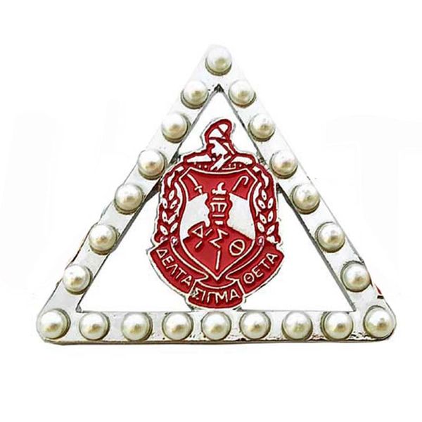 красная эмаль брошь красный женский клуб щит булавка треугольник пирамида жемчужные броши обратно есть петля для женщин ювелирные изделия по, Gray