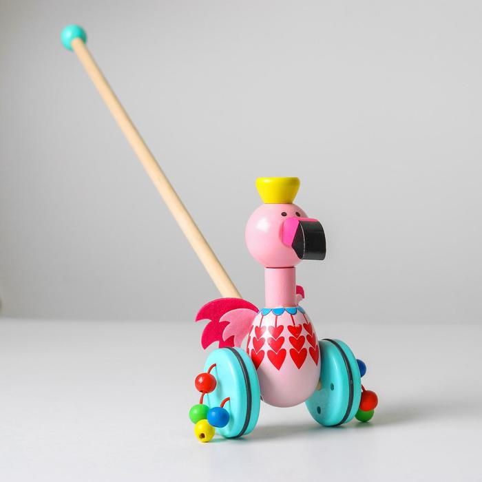 Детская каталка на палочке «Животные с бусинками на колёсах» 17х9х50 см, МИКС