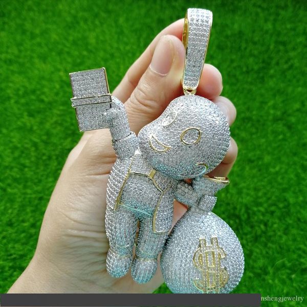 латунь cz большой размер мультфильм рисунок подвески хип-хоп ювелирные изделия мужчины и женщины ожерелье подарок партии cn044a, Silver