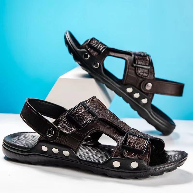 летние мужские сандалии с открытым носком, дышащая и удобная пляжная обувь, повседневные тапочки для вождения и ленивого отдыха 46 коричневый
