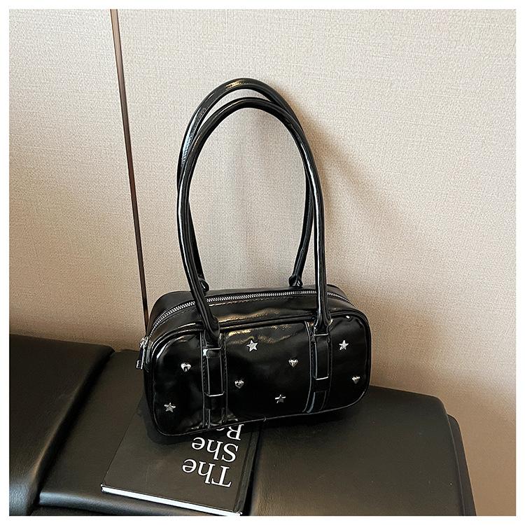 летняя новая высококачественная сумка-тоут большой вместимости с заклепками, женская модная универсальная портативная сумка через плечо чёрный