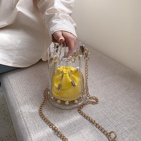 летняя прозрачная маленькая сумка женская 2020 популярной новой корейской версии диких инов цепь посыльного мешок моды ведро
