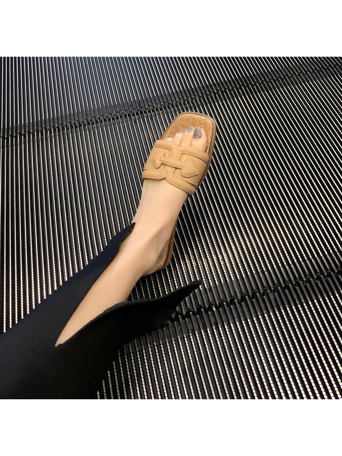 лето новая мода плоская подошва квадратный носок отпуск с уличными шлепанцами женская кожа 40