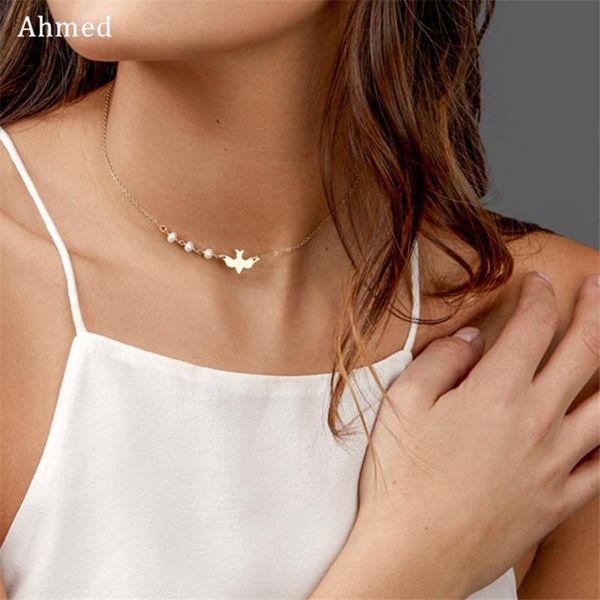 личность choker design простой и мир ахмед ожерелье ожерелье имитация голубь жемчуг мода женщины европейские американские новые ювелирные из, Golden;silver
