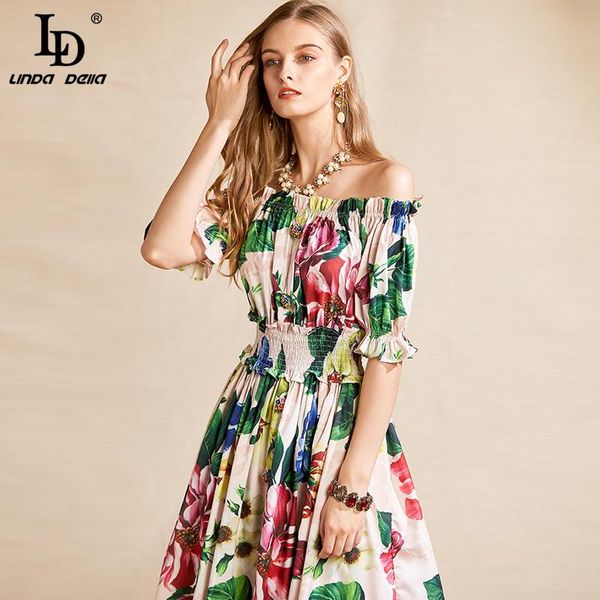 л.д. линда дэлла взлетно-посадочная полоса лето женщины мини платье сексуальная слэш шеи эластичная талия цветок распечатать ruched случайны, White;black
