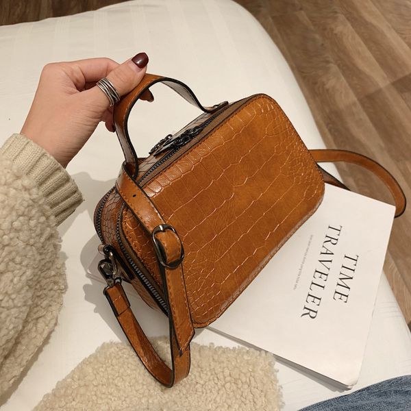 маленькая квадратная сумка простая двойная молния одно плечо диагональная женская сумка