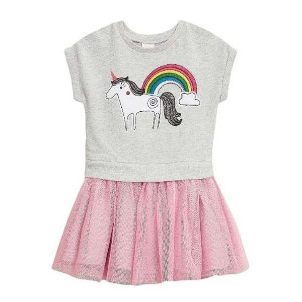 маленькая maven 2020 нового лето ребёнковой одежды бренда платья дети хлопок единорог животное печать с коротким рукавом платье, Red;yellow