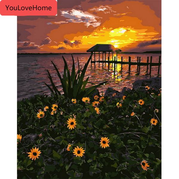 масляная живопись цветочный рисунок холст акриловая ручная роспись домашнего декора окраска по номеру закат настенное искусство для взрослых