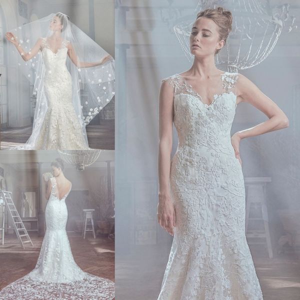 милая шея кружева русалка свадебные платья 3d-цветочные аппликации ремни свадебные платья иллюзия лиф без черных берта свадебные, White