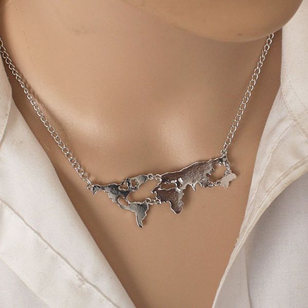 мир ожерелье день земли подарок глобус ожерелье карта мира ожерелье ювелирные изделия мать-земля персонализированные подарки, Silver