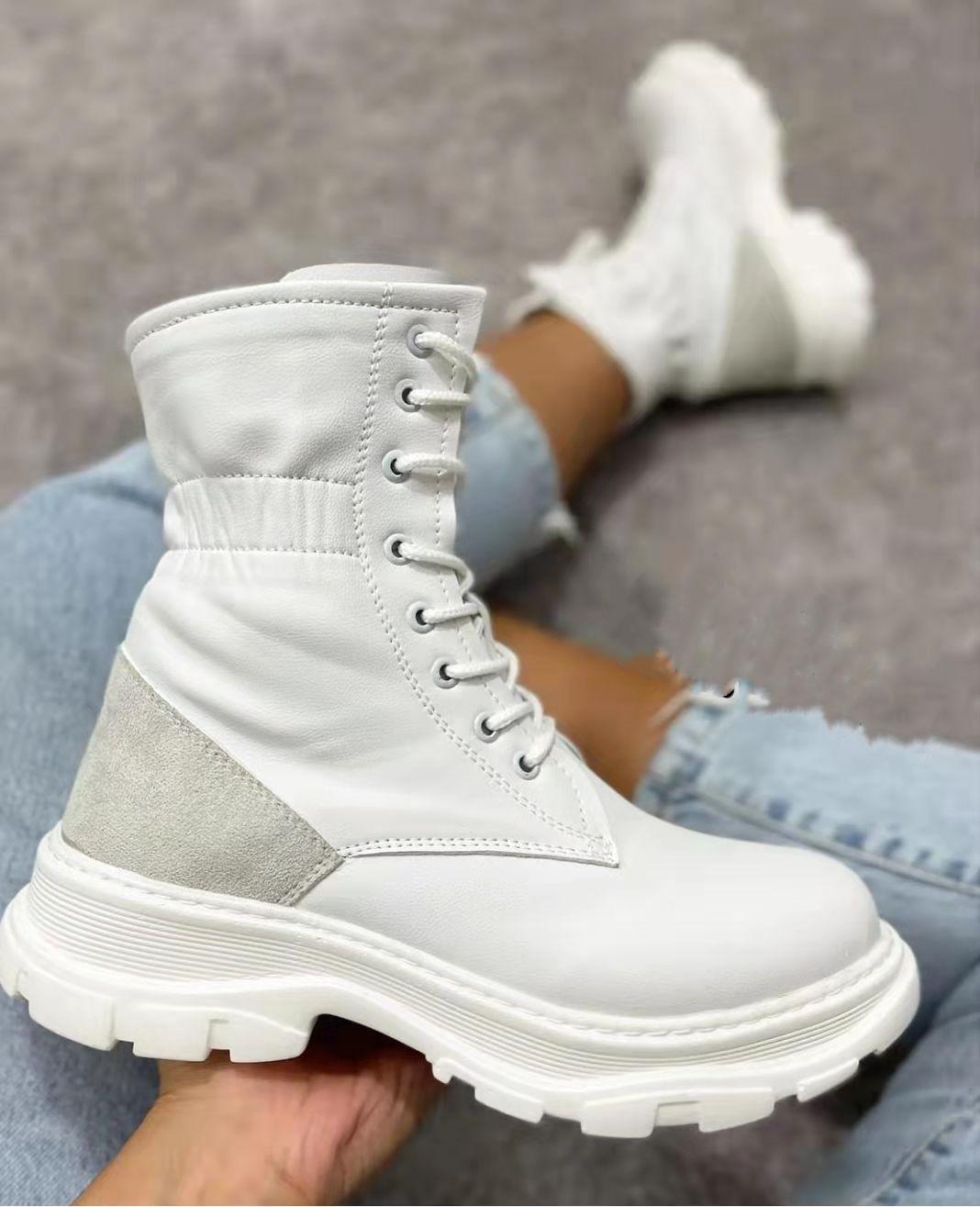 мода Большие размеры осень зима женские ботильоны классические модные кожаные стройные ботинки готические панк-обувь на плоской подошве короткие ботинки женские 41 белый
