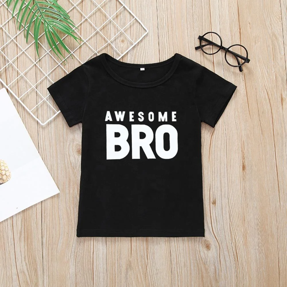 Promotion Sale Pure Cotton AWESOME-BRO Letter Printed Color Black Short Sleeve Children Unisex Summer Breathable T-Shirt