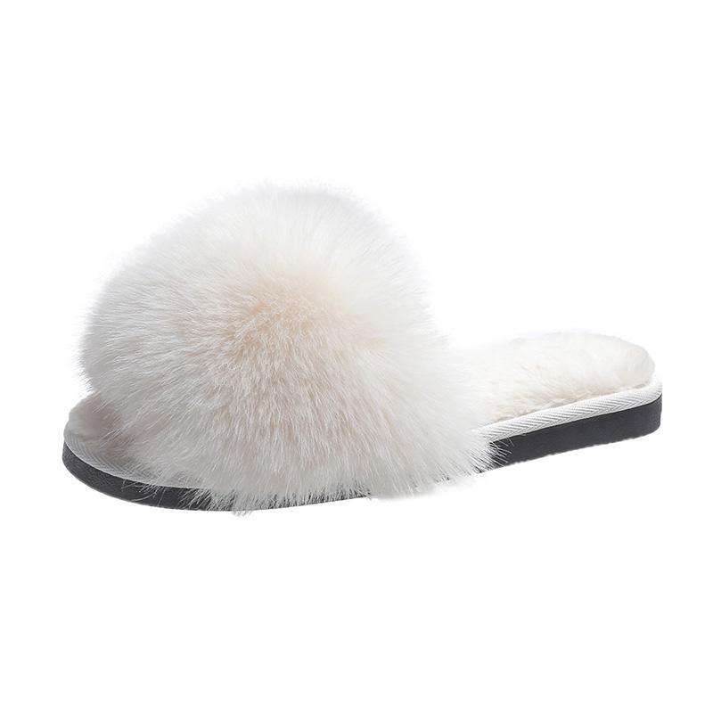 мода Новые женские тапочки Круглый носок Плоская обувь для женщин Слипоны Обувь с мелким вырезом Уличные Повседневные Однотонные Плюшевые Тапочки с открытым носком 42-43 белый