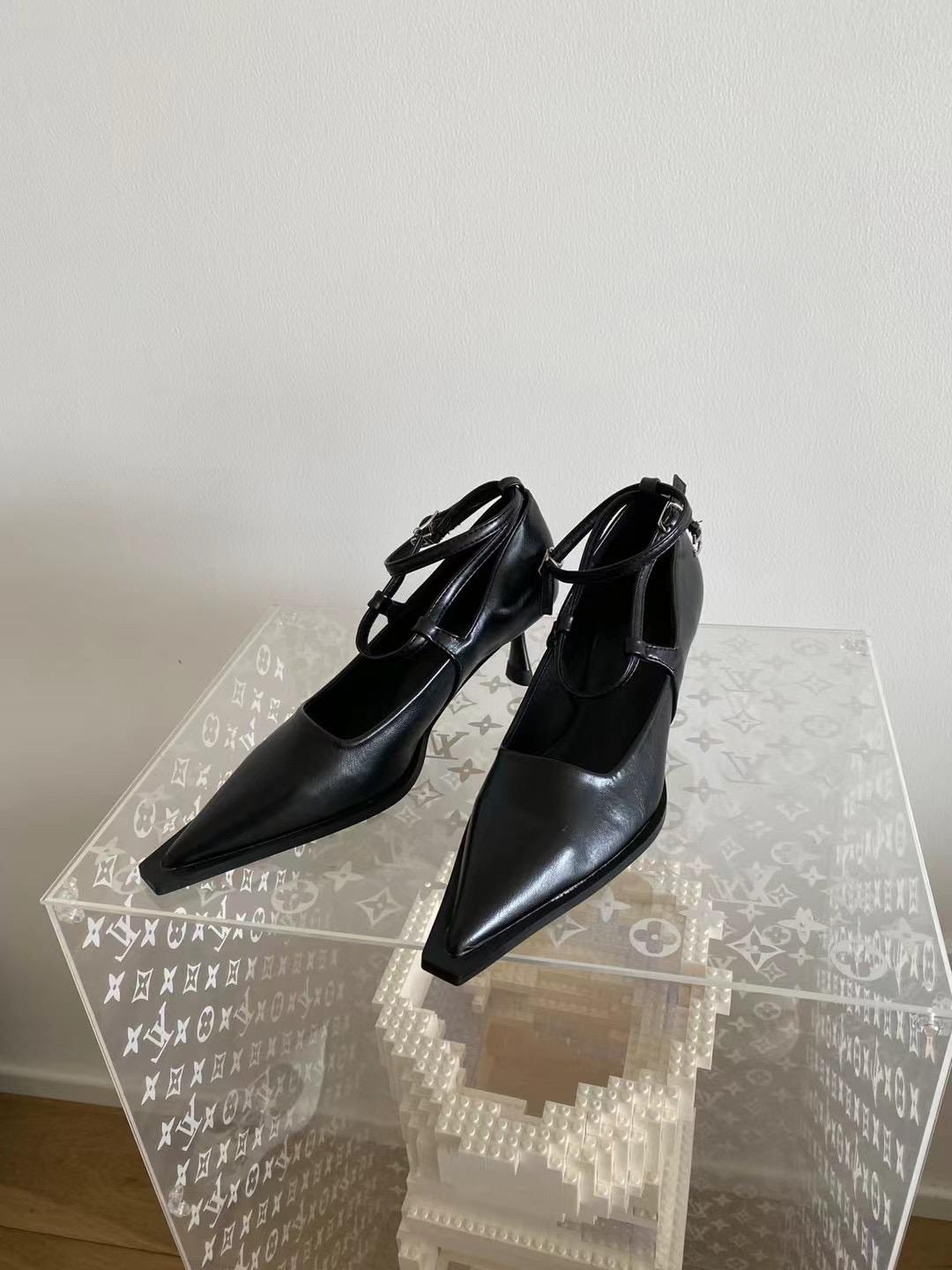 мода Туфли-лодочки с острым носом Женские сандалии 2024 Новинки Черный Белый Коричневый Осень Весна Ремешок на щиколотке Вечеринка Платье Туфли Тонкий Высокий каблук Мюли 5.5 чёрный