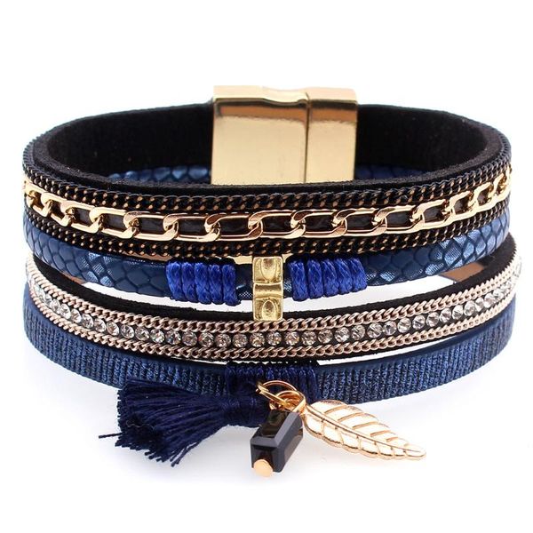 мода многослойная кожа с кисточкой мяч шарм очарование горный хрусталь браслеты браслеты магнитные пряжки браслеты ювелирные изделия pulseir, Golden;silver