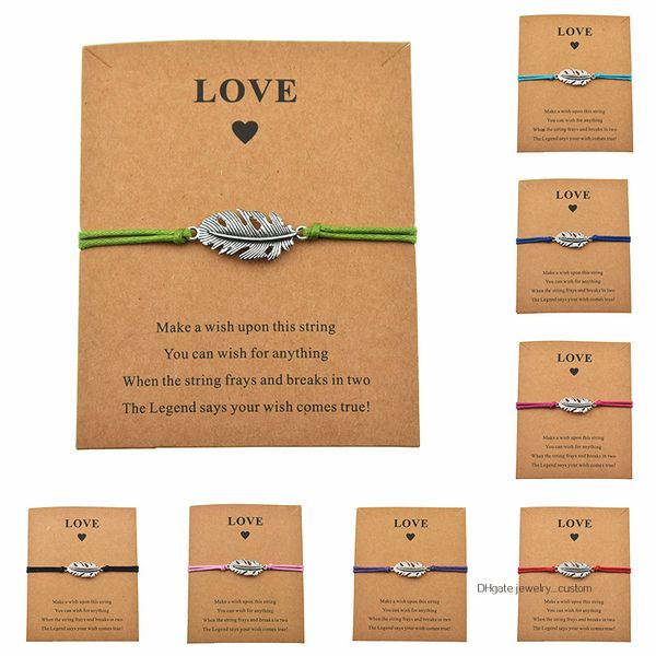 мода регулируемый шнур счастливые листья металлические листья очарование любовь бумажная карточка браслеты подарки дружбы для любителя пара, Golden;silver