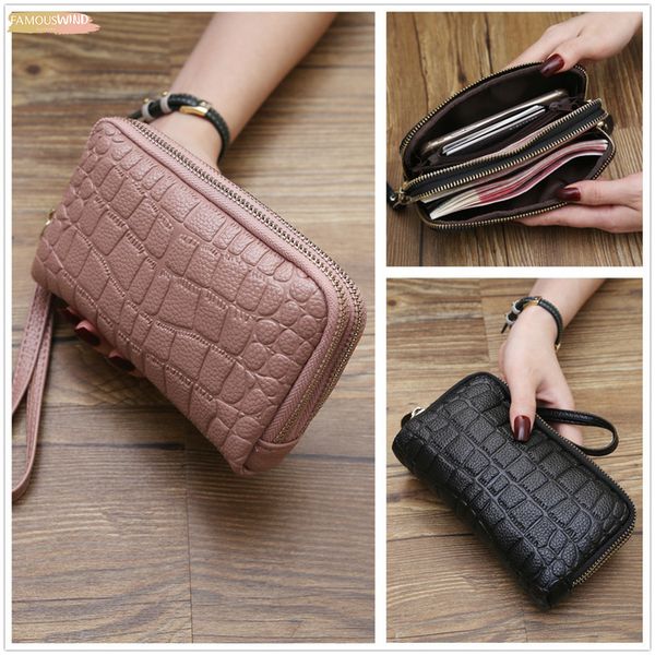 мода 2020 новая натуральная натуральная кожаная сумка женская двойная молния большой емкости ручной пакет женский кошелек для монет телефонн
