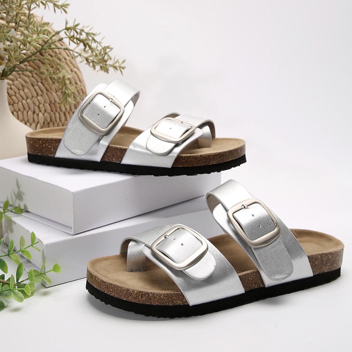 мода 2024 лето женские новые модные классические лоферы с пряжкой без застежки нескользящие на плоской подошве 42 серебряный