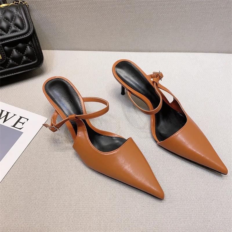 модные летние туфли-мюли женские модные туфли с острым носком на высоком каблуке женские элегантные вечерние платья шлепанцы сандалии 35 оранжевый