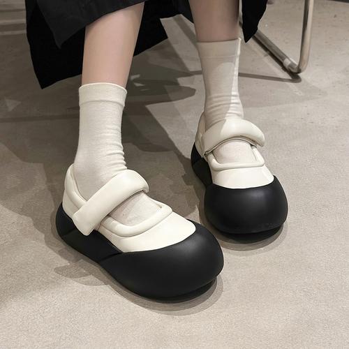модные туфли Мэри Джейн из мягкой кожи для женщин на осень новый стиль туфли с большим носком туфли на толстой платформе для женщин 40 белый