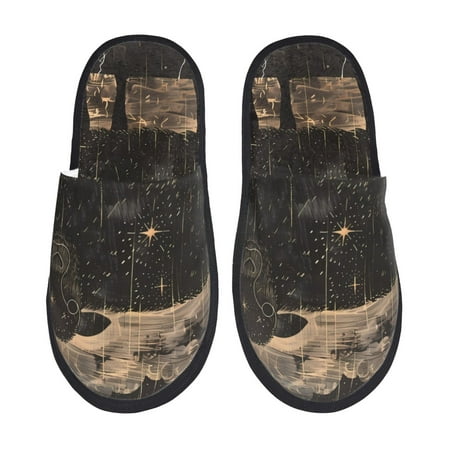 Tideii Starry Night Black Sheep for Home Indoor Cotton Slippers Autumn and Winter EVA Plush Slippers Household Supplies Unisex-Medium